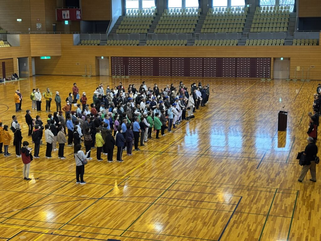体育館が借りれるとの事で無理せず、体育館でグランドゴルフをやる事に!ホール数は少なくなったものの、ホールインワン連発で盛り上がりました。皆なさん上手?