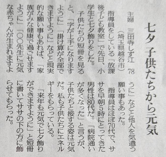 三田寺しず江さんの記事が東京新聞に掲載されました
